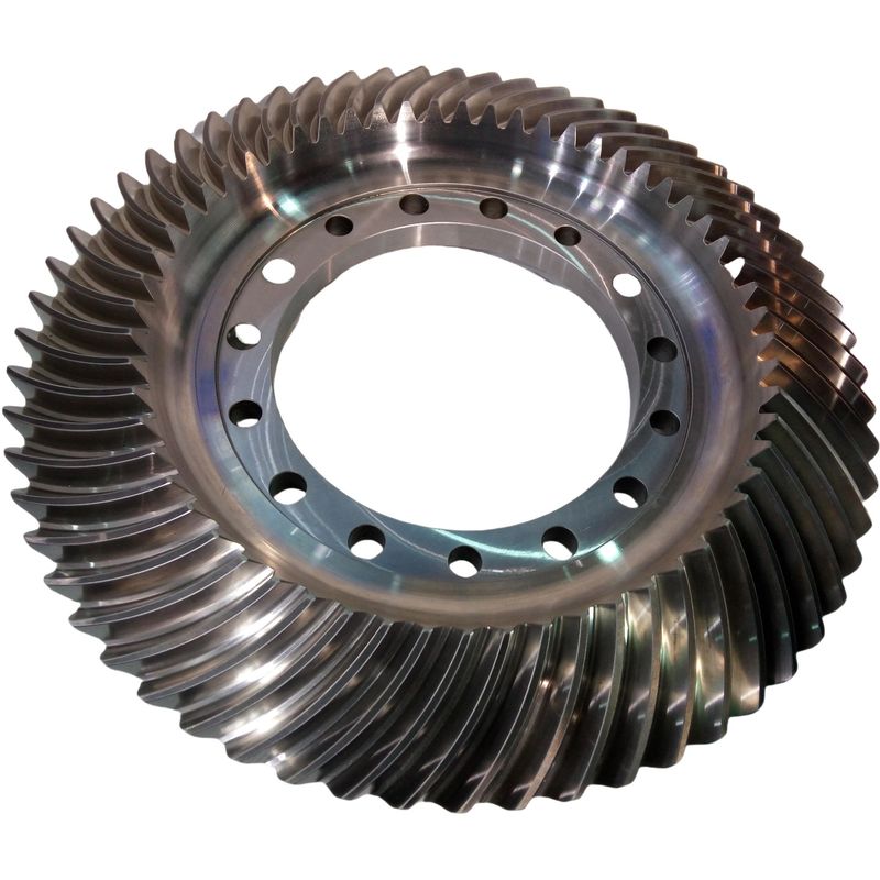 सीएनसी गियर मिलिंग या पीसने की प्रक्रियाओं द्वारा संसाधित बेवल गियर, जिसमें दांतों की सतहें स्थानिक रूप से घुमावदार सतहें होती हैं।